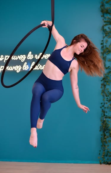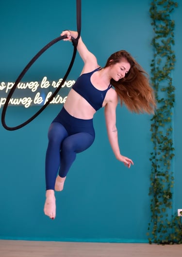 Aujourd’hui, formée à l’enseignement du cerceau aérien et du hamac aérien, c’est avec plaisir qu’elle transmet sa passion à ses élèves